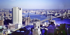 2001 "mein Fenster" im Hilton Millenium, Brooklyn und Manhattan Bridge